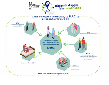 Conformément à l’article 23 de la loi du 23 juillet 2019 relative à l’Organisation et la Transformation de notre Système de Santé (OTSS) : « L’ensemble des dispositifs de coordination (réseaux de santé, MAIA, CTA, PTA) ont été unifiés dans un dispositif unique DAC. »